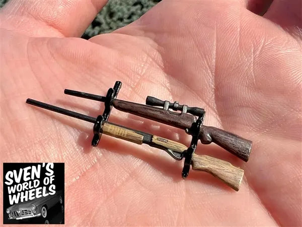 Chrome "mudder" rims and tires, including a spare in the bed (on a rack)Roll-barFront bumper winchGun rack (with irons)Lifted suspensionA very special decal set